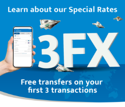 Get special 3FX rates for your first 3 transfers to participating countries!