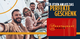 Kulinarische Erlebnisse von Bistro bis Gourmetrestaurant. Mit der Restaurant Choice-Geschenkkarte verschenken Sie einzigartige kulinarische Erlebnisse. Ob Sie nun nach einem Geburtstagsgeschenk suchen, einer Aufmerksamkeit zu Weihnachten, zum Kollegenabschied oder um einfach mal zwischendurch "Danke" oder "Gut gemacht" zu sagen: Restaurant Choice ist immer das passende Geschenk. Schweizweit in über 9'000 Restaurants einlösbar. In Zusammenarbeit mit Schweizer Lunch-Check.